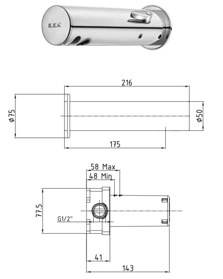 • Μπαταρία Νιπτήρος Ηλεκτρονική Μπαταρίας Serel Eca 108109004 Χρώμιο (χωρίς ανάμιξη)