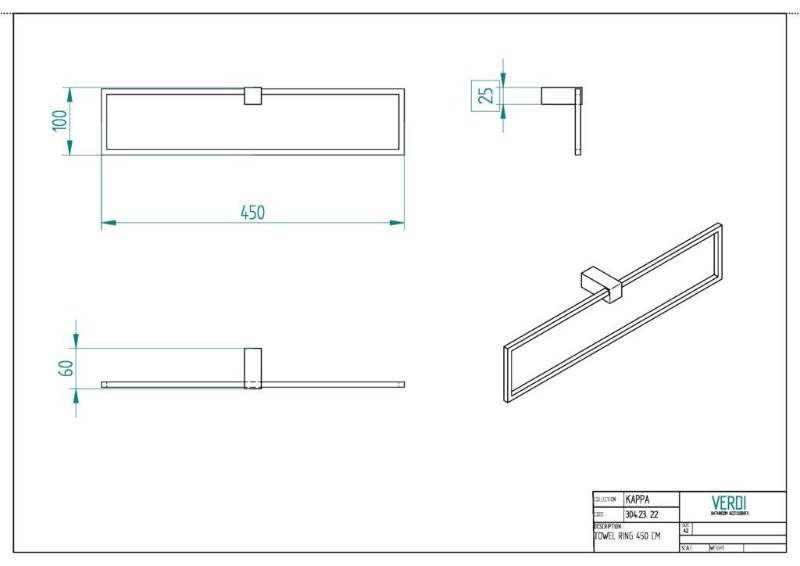 Κρίκος Πετσέτας Verdi Kappa 3042322 Χρώμιο 45x6x10cm